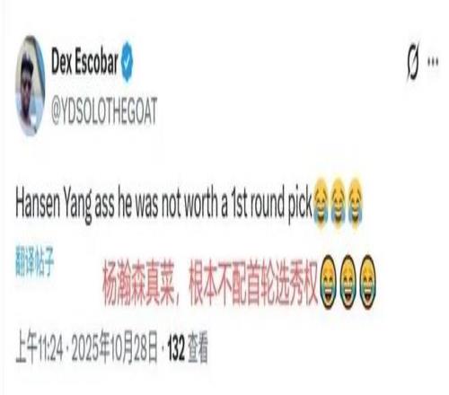 杨瀚森的糟糕表现迅速引发了美国球迷的热议,这些声音中充满了质疑和批评,不少人直言他的表现“灾难”,“杨瀚森真菜,根本不配首轮选秀权”、“杨瀚森持球的时候根本不知道自己在干什么”、“这场打得堪称灾难”、“16号签选择杨瀚森就是在浪费”,类似的批评声在社交媒体上不绝于耳,这些批评并非完全空穴来风,杨瀚森在本场比赛中的正负值为-1,这意味着他在场时球队净负对手1分,对于一名内线球员来说,这样的效率值确实难以令人满意