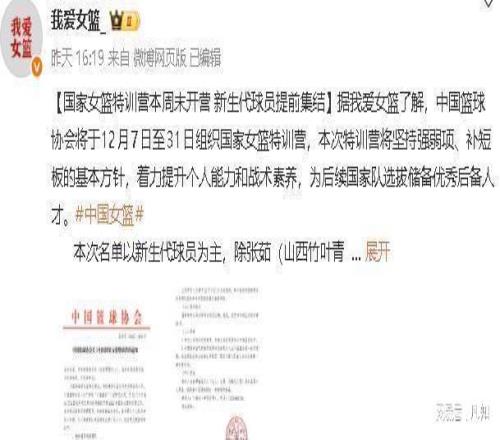 这消息还没消化完,才过了三天,12月4号,圈内知名的媒体人又爆了个猛料:中国篮协要组织国家女篮特训营,张子宇赫然在列,而且,还是以领衔的身份!