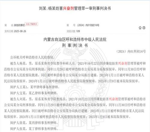 【文眼】刘宝、杨明除被反兴奋剂中心通报禁赛外,还被所在单位处理,更是被法办判刑。该案被称为全国首例“妨害兴奋剂管理罪”案。